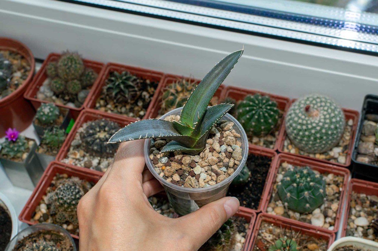 Агава титаническая в возрасте 1 года и 9 месяцев / Agave titanota