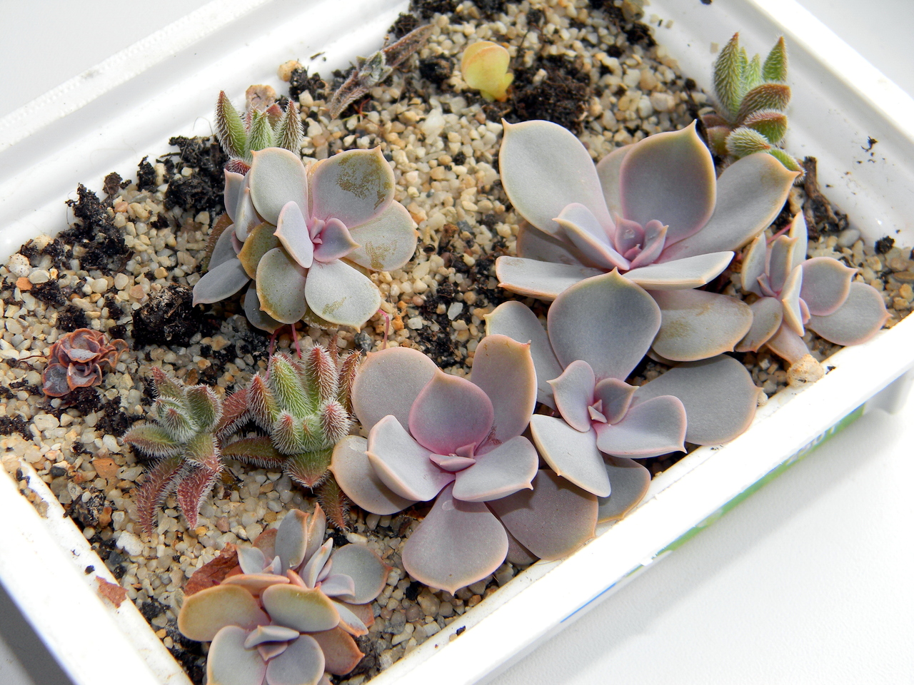 Эхеверия Perle von Nurnberg и крассулой мезембриантемовидной