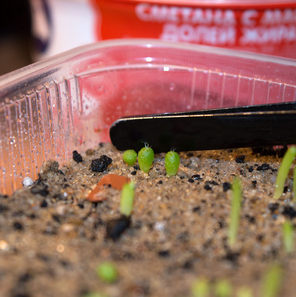 Сеянцы фрайлеи каштановой в возрасте 1 недели
