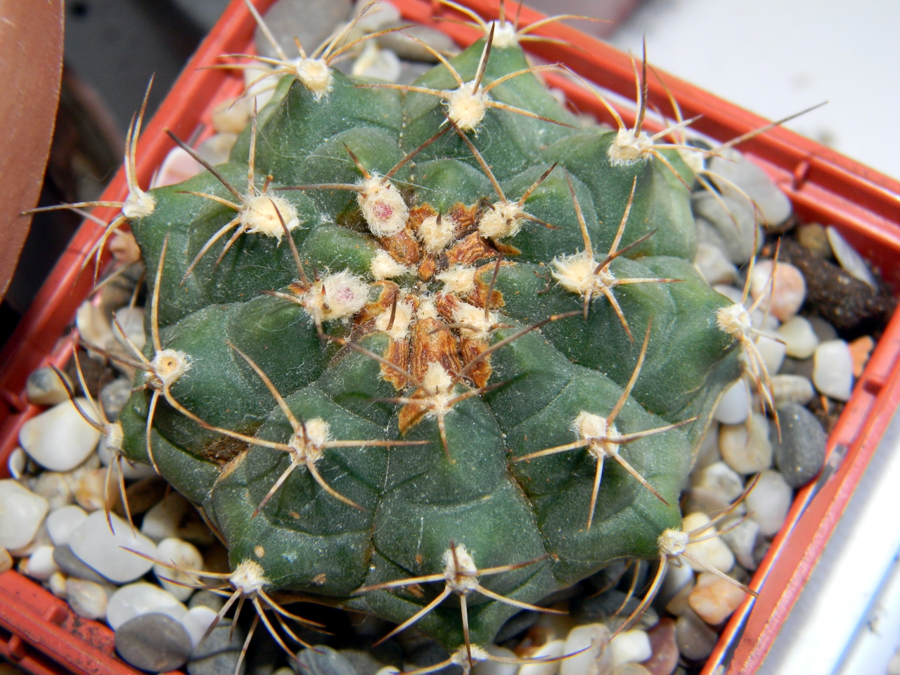 Gymnocalycium anisitsii с макушкой, пораженной красным кактусовым клещом