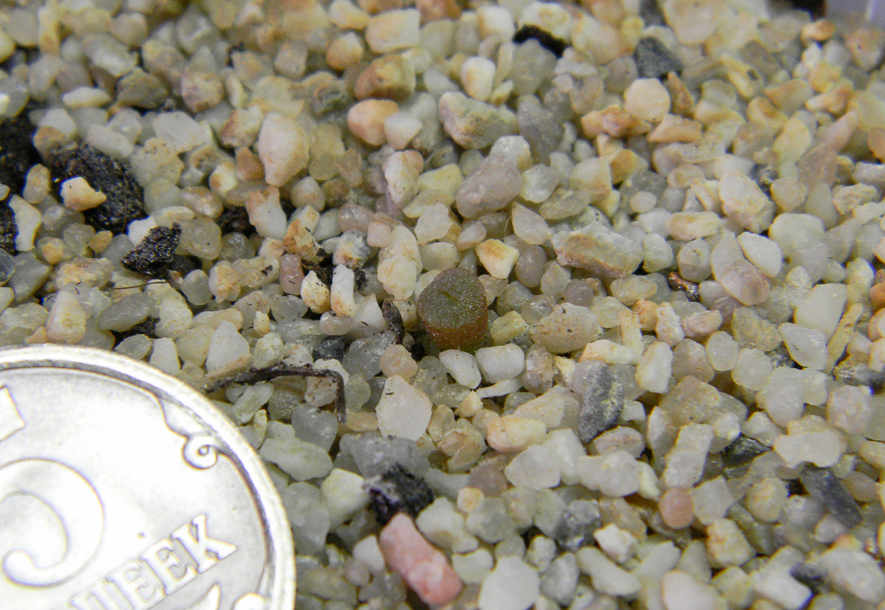 Если вы посеяли смесь литопсов, с первых же дней будет ясно, кто из них темный, а кто — зеленый.