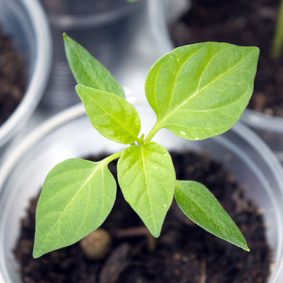 Сеянец острого перца Fish с первыми признаками вариегатности