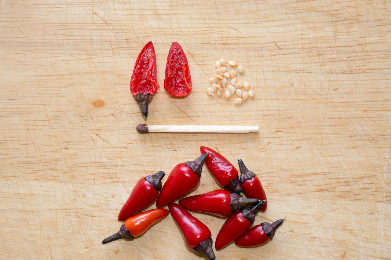 Урожай собран с четырехмесячного куста, росшего на южном подоконнике. В одном стручке насчитала 26 семян. Острота — 30–50 тысяч баллов по шкале Сковилла.