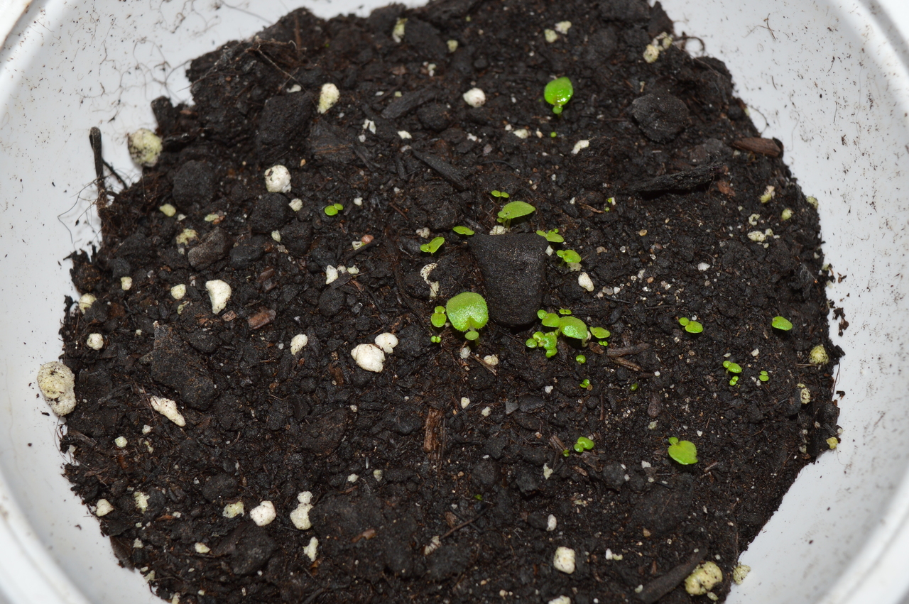 Сеянцы сенполии в возрасте 2 недель