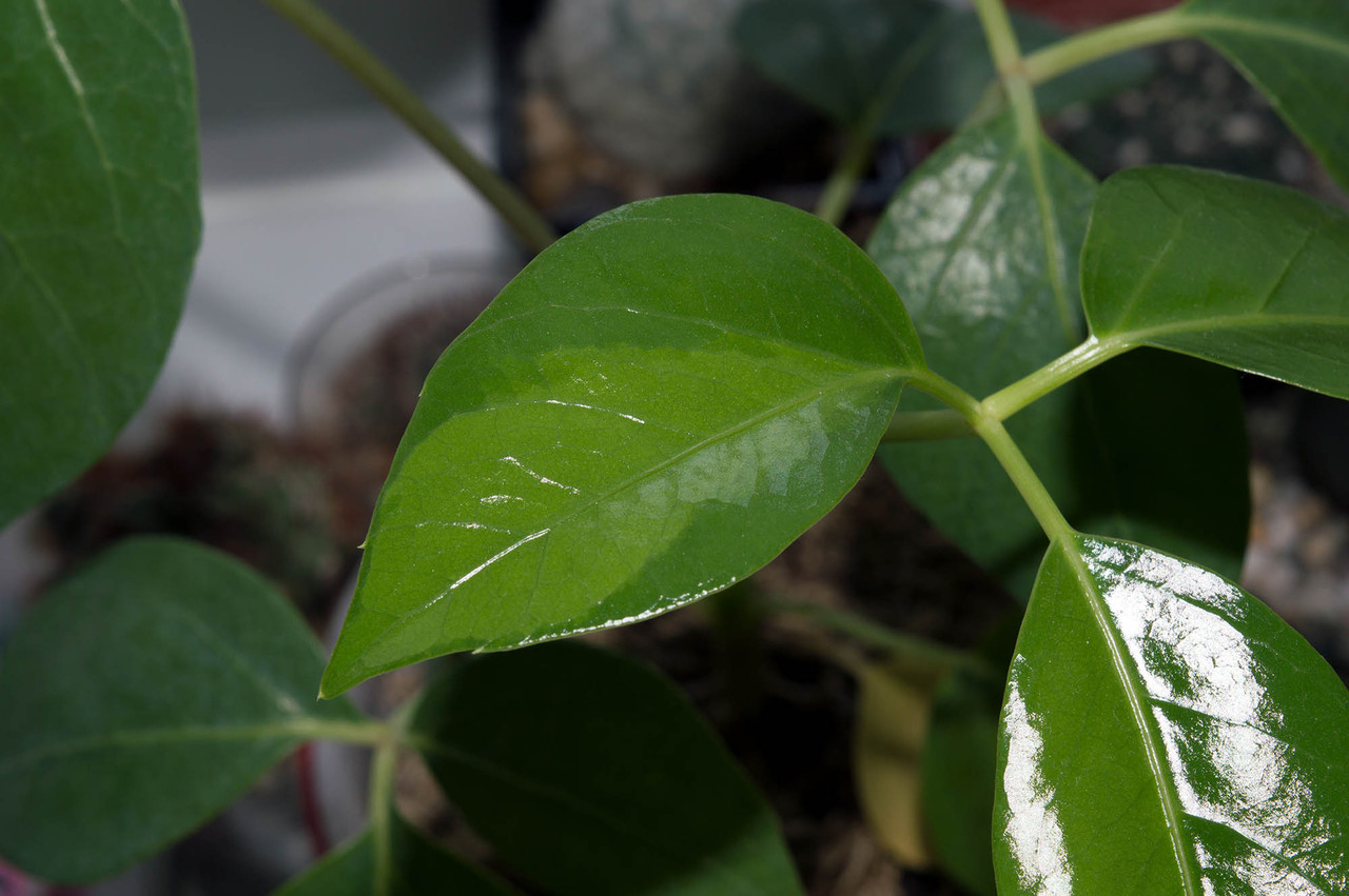 Растению 8 месяцев. Пестролистность проявилась только на новом листе, остальные имеют однотонную окраску.