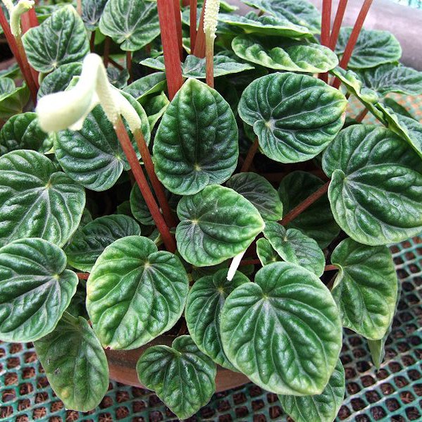 Получила свое название за интересную фактуру листьев. Их глубокий зеленый оттенок хорош сам по себе, но если вы предпочитаете пестролистные формы, существует и вариегатная пеперомия. Хотя цветы и невелики, они составляют прекрасную партию листве. Максимальная высота растения — 15 см, идеальные условия содержания — высокая влажность и небольшой, но регулярный, доступ света.