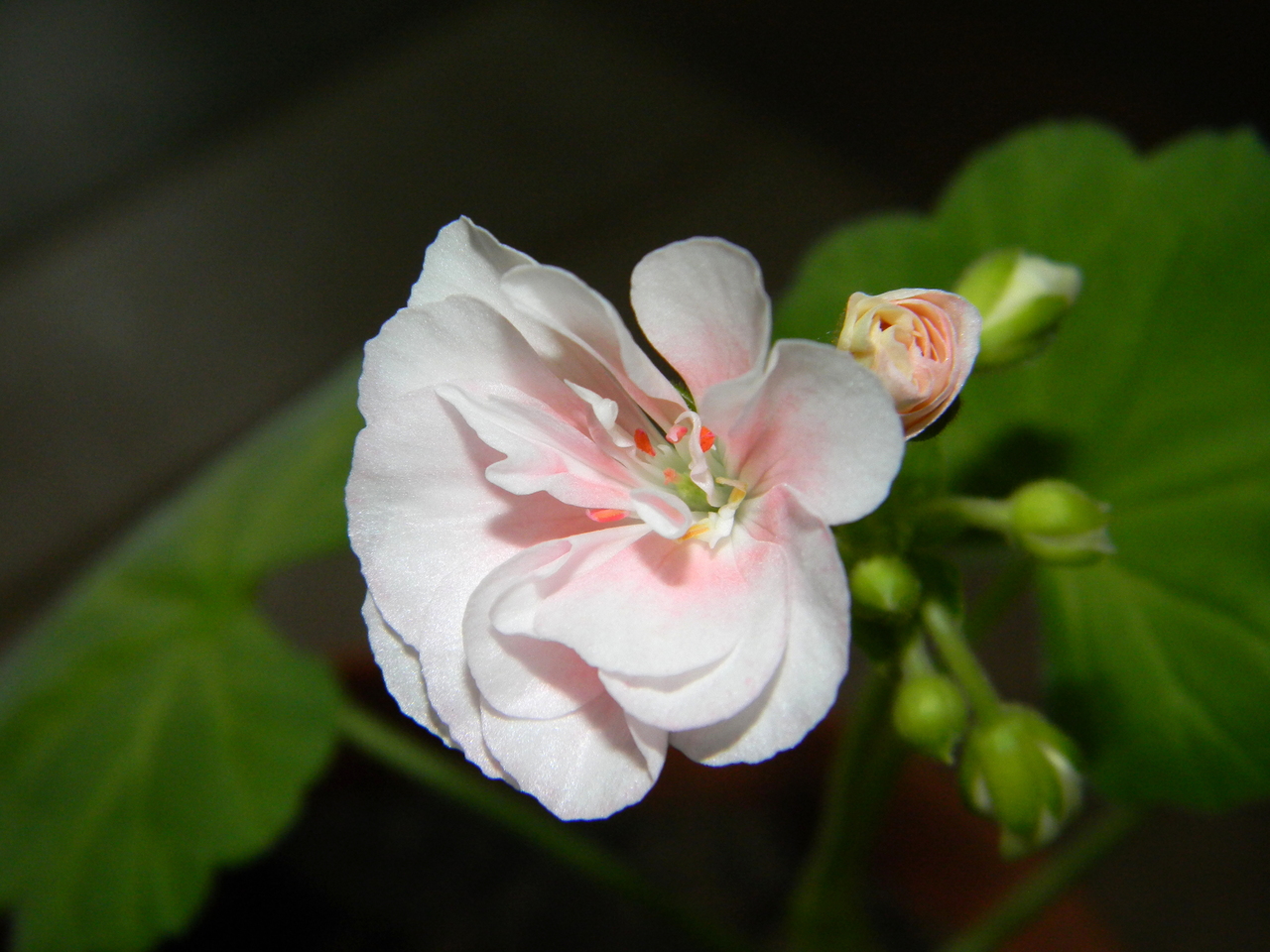 К сожалению, показать изумительную алую розебудную пеларгонию пока не могу: не получается ее сфотографировать ну совсем. Зато есть другие, не менее прелестные, экземпляры.