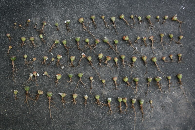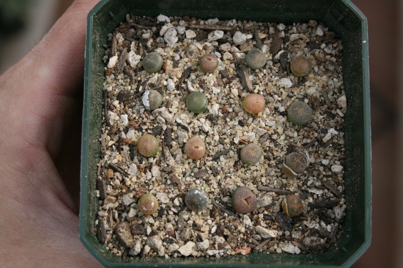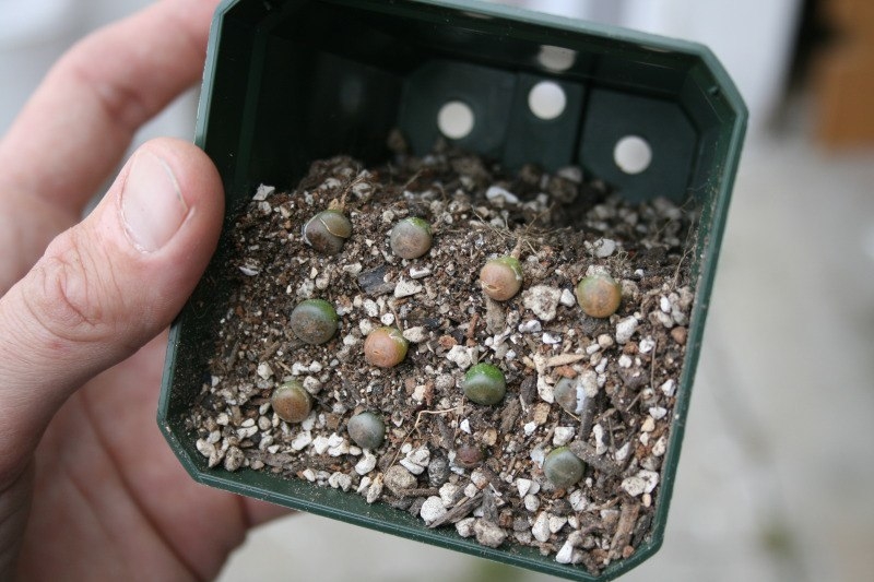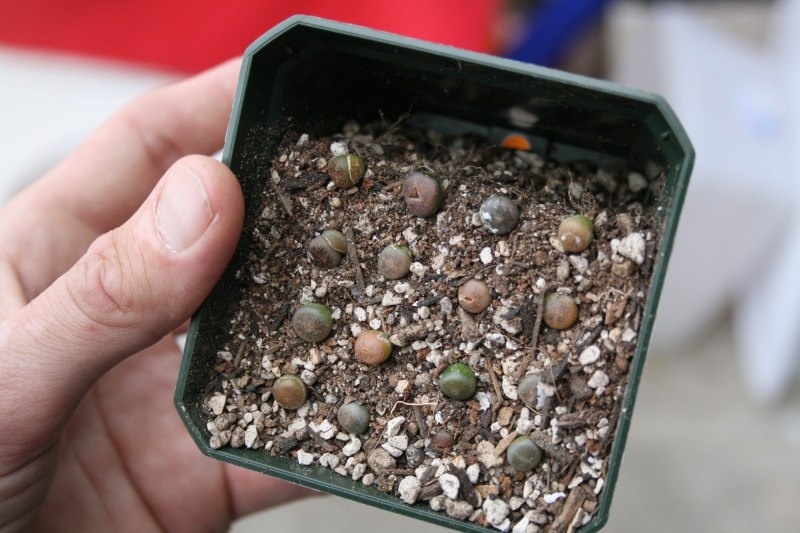 Автор фотографий и оригинала статьи показывает все на примере 14-месячных ростков литопса. Семена этого суккулента пылевидные, посеять их ровными рядами просто невозможно, и рано или поздно растения начинают напирать друг на друга. Проблема в том, что литопсы довольно уязвимы и пересадку очень не любят, а значит нужно как можно меньше затрагивать корневую систему и расположить ее на новом месте самым естественным образом.