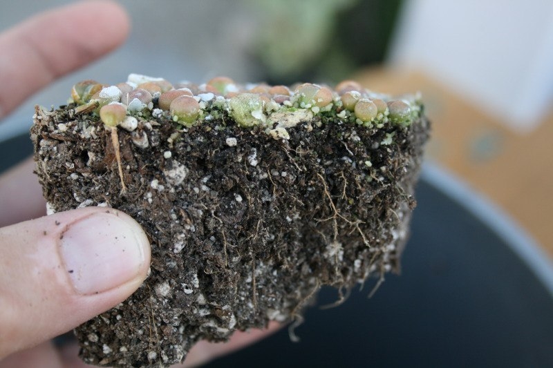 В случае с литопсами желательно подождать один день, чтобы места повреждений на корневой системе подсохли (это снизит риск загнивания), но автор советует выжидать 2 дня, «чтоб наверняка». Подготовленная почвосмесь сухая по той же причине. Разумеется, если речь не об аскетичных суккулентах, ждать не нужно — обычные растения могут просто засохнуть; лучше высвобождать каждый росток из общего кома и сразу сажать на новое место.