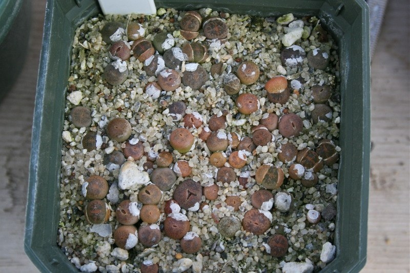Для фиксации надземной части растений можно подсыпать немного песка: в нем не задержится вода, а устойчивое положение литопсов сохранит корневые шейки от случайных механических повреждений.