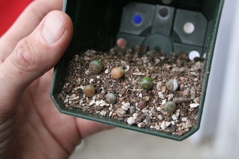 Автор фотографий и оригинала статьи показывает все на примере 14-месячных ростков литопса. Семена этого суккулента пылевидные, посеять их ровными рядами просто невозможно, и рано или поздно растения начинают напирать друг на друга. Проблема в том, что литопсы довольно уязвимы и пересадку очень не любят, а значит нужно как можно меньше затрагивать корневую систему и расположить ее на новом месте самым естественным образом.