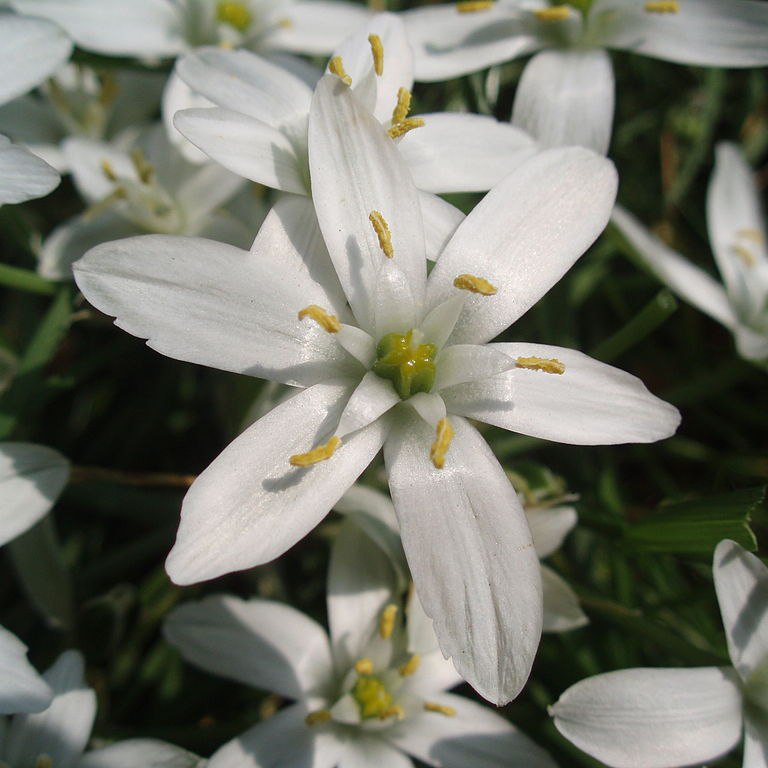 Белый цветок в форме шестиконечной звезды поистине прекрасен, за что в других странах известен в народе как звезда Вифлеема. Помимо декоративных качеств птицемлечник хвостатый ценится за лекарственные свойства.